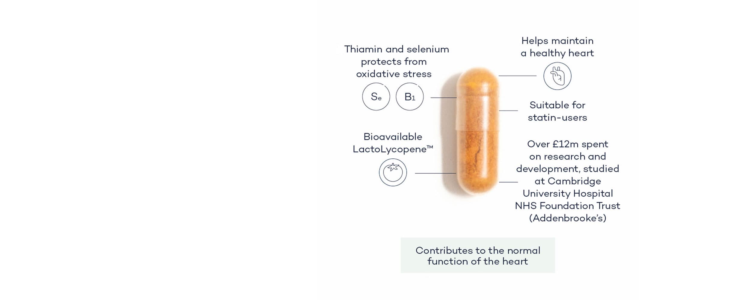 Our unique, patented LactoLycopene™ formulation combined with thiamin, selenium and B vitamins to protect heart health.