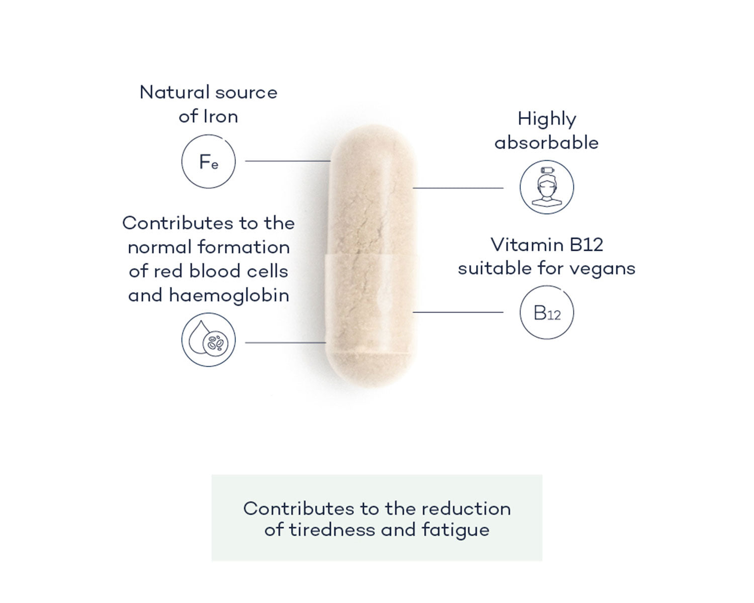 As well as supporting energy metabolism, immunity and cognitive health, each natural Iron+ capsule contributes to the reduction of tiredness and fatigue and supports healthy cell division.