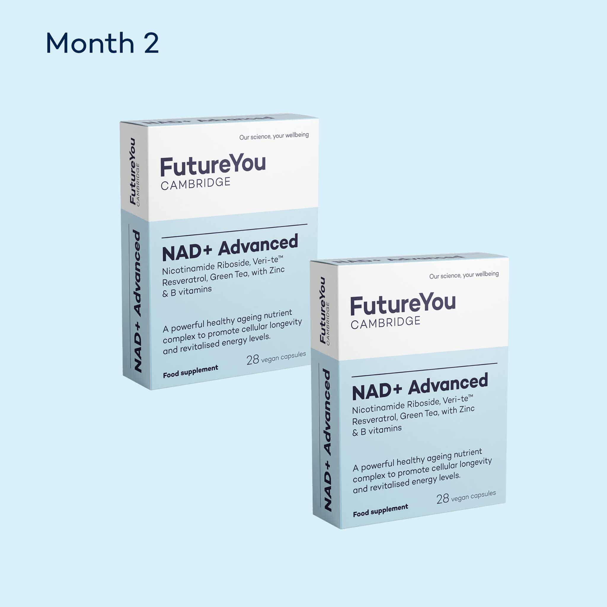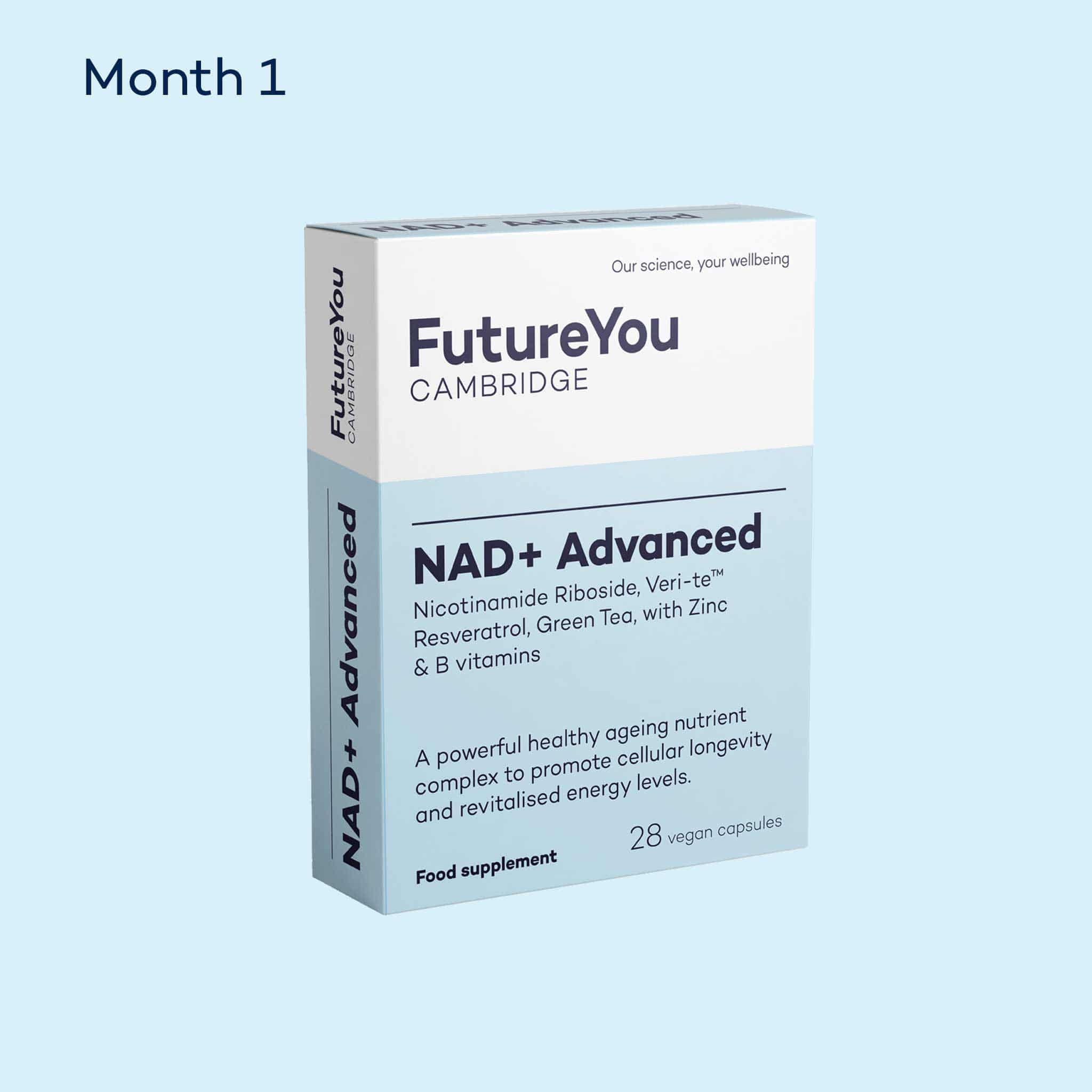 We can get NR naturally from dairy milk and other foods, but in small amounts. You'd need to drink over 300 litres of milk to obtain the 300mg of NR you get from just one daily capsule of NAD+ Advanced. We’ve also included B vitamins and vitamin C with zinc, to support energy metabolism, nervous system health, red blood cell formation, and protection from oxidative stress. NAD+ Advanced is a science-led way to support your energy, focus, and long-term healthy ageing.