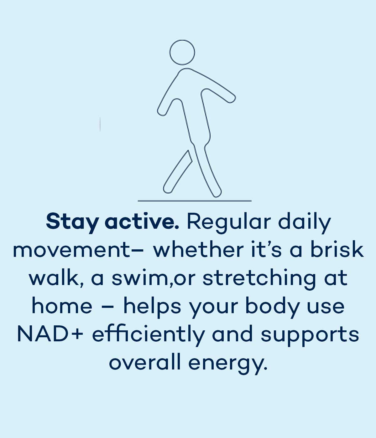 “NAD+ is central to the health of every cell in your body, but levels decline due to age, stress and other factors. NAD+ Advanced helps you rebuild them, supporting your daily energy from a cellular level – and your long-term well being.”
