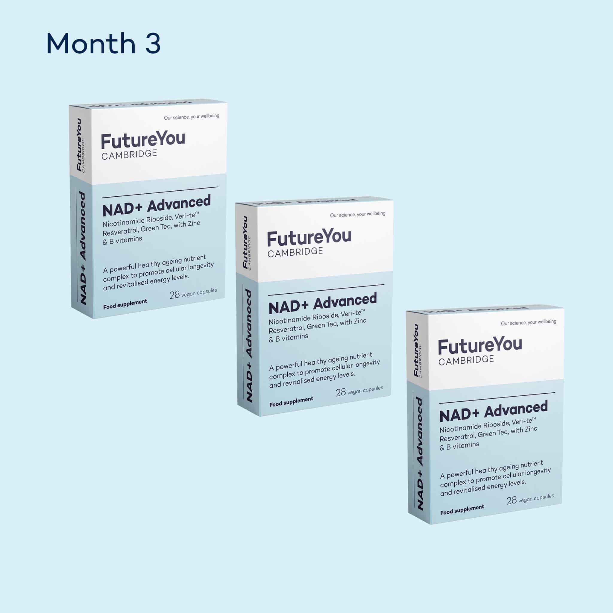 Nicotinamide Riboside is a form of vitamin B3 clinically proven to raise NAD+ levels. Our targeted formulation combines 300mg with high-quality Veri-te™ resveratrol and green tea extract – both rich in antioxidants – to enhance and support the body’s NAD+ production pathway.