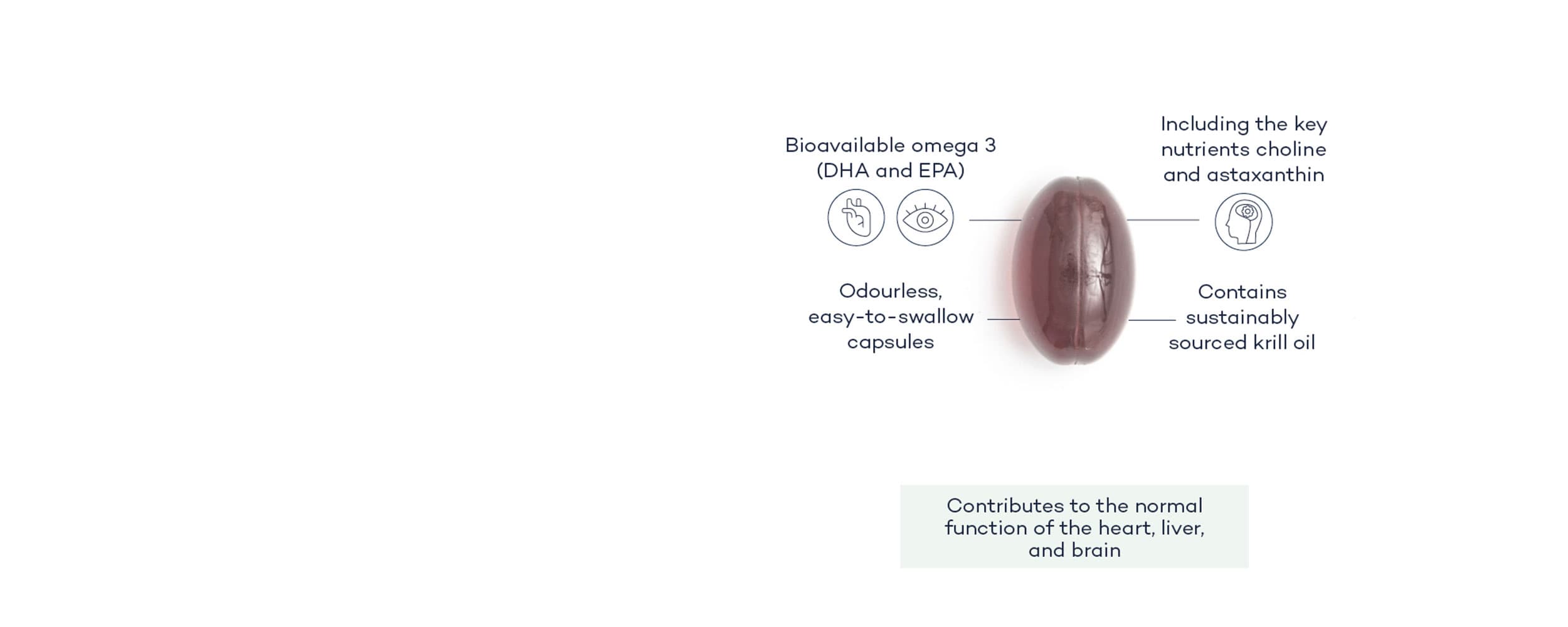 Rich in omega 3 plus the naturally occurring nutrients choline and astaxanthin.