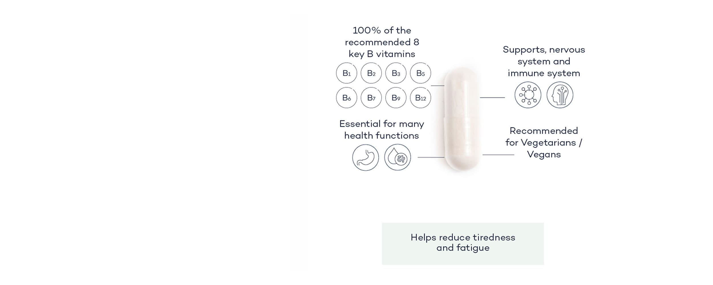 B vitamins are essential for many aspects of health, from digestion and the nervous system, to skin health and the immune system. They also contribute to the reduction of tiredness and fatigue, normal heart function and even normal mental performance.